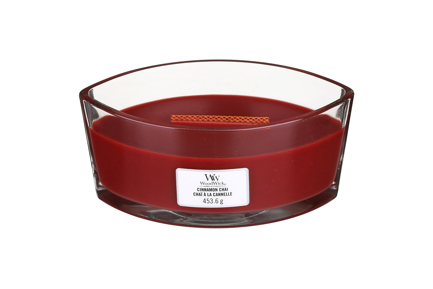 Raspandeste un parfum placut in orice spatiu doresti cu lumanarile Woodwick. Realizata din parafina de cea mai buna calitate si ceara de soia, noile lumanari au amestecate de parfumuri foarte concentrate. Aroma Cinnamon Chai va umple spatiul cu o combinatie de arome de scortisoara si vanilie, si sunetul bland al unui foc care trosneste.