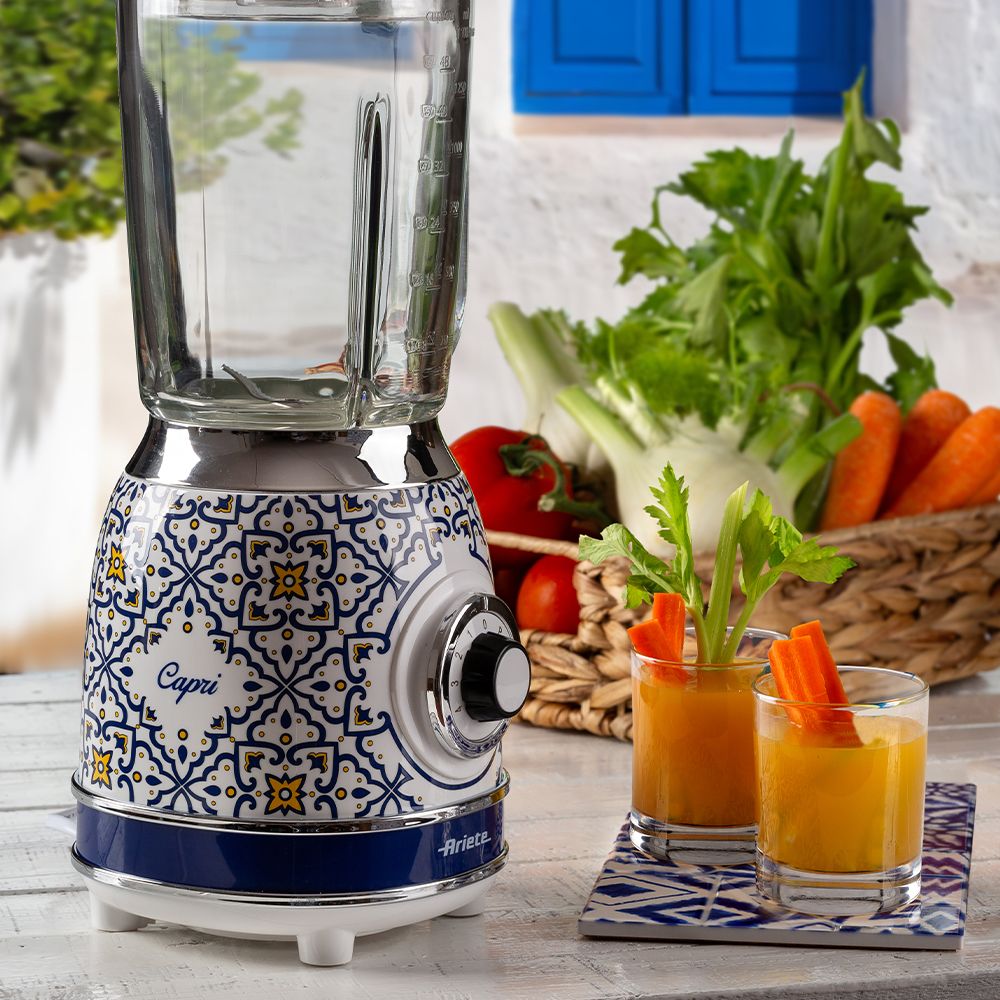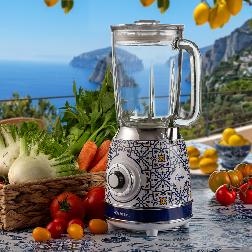 Blenderul Ariete Capri este un aparat electrocasnic care imbina armonios designul retro italian cu tehnologia moderna, devenind astfel o piesa deosebita pentru orice bucatarie. Inspirata de frumusetea si stilul mediteranean, colectia Capri de la Ariete se remarca prin culorile pastelate, liniile delicate si detaliile vintage care aduc un aer proaspat si elegant in spatiul tau culinar.