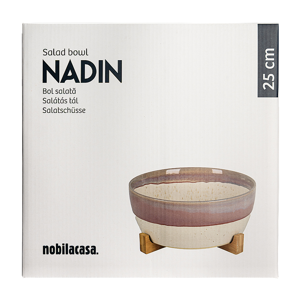 Colectia NADIN este o alegere ideala pentru cei care doresc sa aduca un strop de culoare si stil modern bucatariei. Realizata din ceramica de calitate, colectia imbina functionalitatea cu un design actual si expresiv. Paleta de culori este variata si vesela, iar combinatiile cromatice %u2013 maro cu crem, mov cu crem si portocaliu cu crem %u2013 transforma fiecare piesa intr-un element decorativ de sine statator. In aceasta colectie gasesti atat accesorii de servire, cat si piese utile pentru gatit: tavi, boluri, carafe, cesti, vase termorezistente si seturi pe suport de bambus. Fiecare produs poate fi utilizat atat in viata de zi cu zi, cat si in cadrul unor mese festive, oferind un plus de rafinament oricarui decor. Piesele din colectia NADIN se pot combina usor intre ele pentru a crea un set complet si armonios, iar functionalitatea lor este completata de durabilitate si usurinta in intretinere. Produsele se pot spala in masina de spalat vase si pot fi utilizate in cuptorul cu microunde, ceea ce le face perfecte pentru un stil de viata activ si modern.