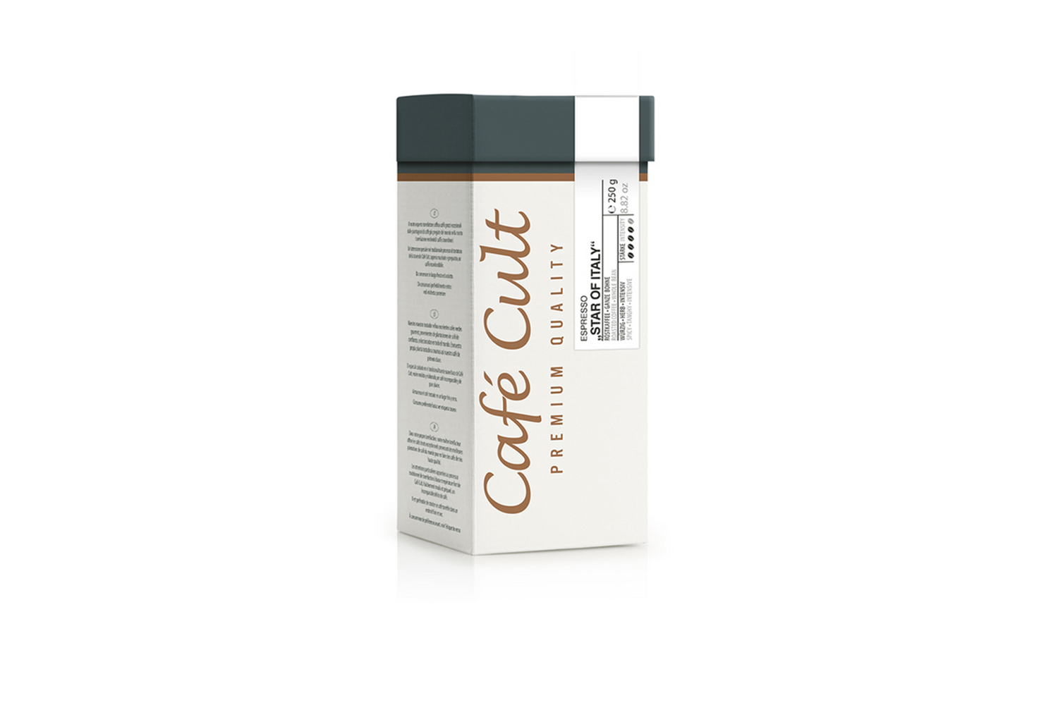 Descopera cafeaua boabe Espresso Star of Italy de la Demmer Tea, disponibila la Nobila Casa, si lasa-te purtat de gustul sofisticat al Italiei. Aceasta cafea picanta este rezultatul unei combinatii perfecte de boabe selectate cu grija din regiunile inalte ale Braziliei, cafea bruta africana fina si o specialitate rara de Robusta din Indonezia. Espresso Star of Italy ofera o experienta gustativa picanta si acidulata, echilibrata de dulceata subtila, fiind ideala pentru cei care apreciaza un profil complex si rafinat. Este baza perfecta pentru prepararea specialitatilor de cafea, precum Cappuccino sau Latte Macchiato. Perfecta pentru iubitorii de cafea care doresc sa isi rasfete simturile cu o bautura de calitate superioara, aceasta cafea boabe este, de asemenea, o alegere excelenta pentru a completa un cadou sofisticat.