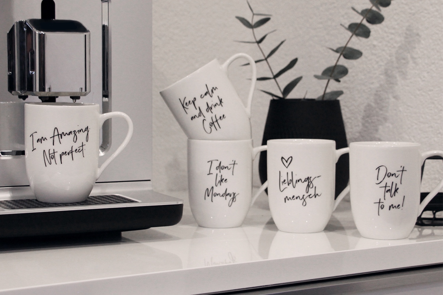 Pauze de cafea cu mesaje de la Villeroy&Boch. Cana ta, mesajul tau personal! Cele mai populare cani fac acum declaratii clare, fie ca este pentru tine, fie ca este potrivita de cadou pentru o persoana speciala. Cana cu mesaj este realizata din portelan alb si imprimata pe o parte cu un mesaje special. Datorita portelanului simplu si alb, cana se potrive%u0219te cu multe colectii si ofera numeroase optiuni de combinatie. Care devize sunt preferatele tale?
