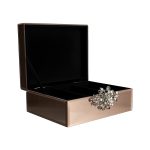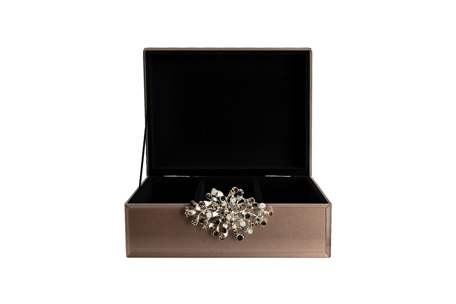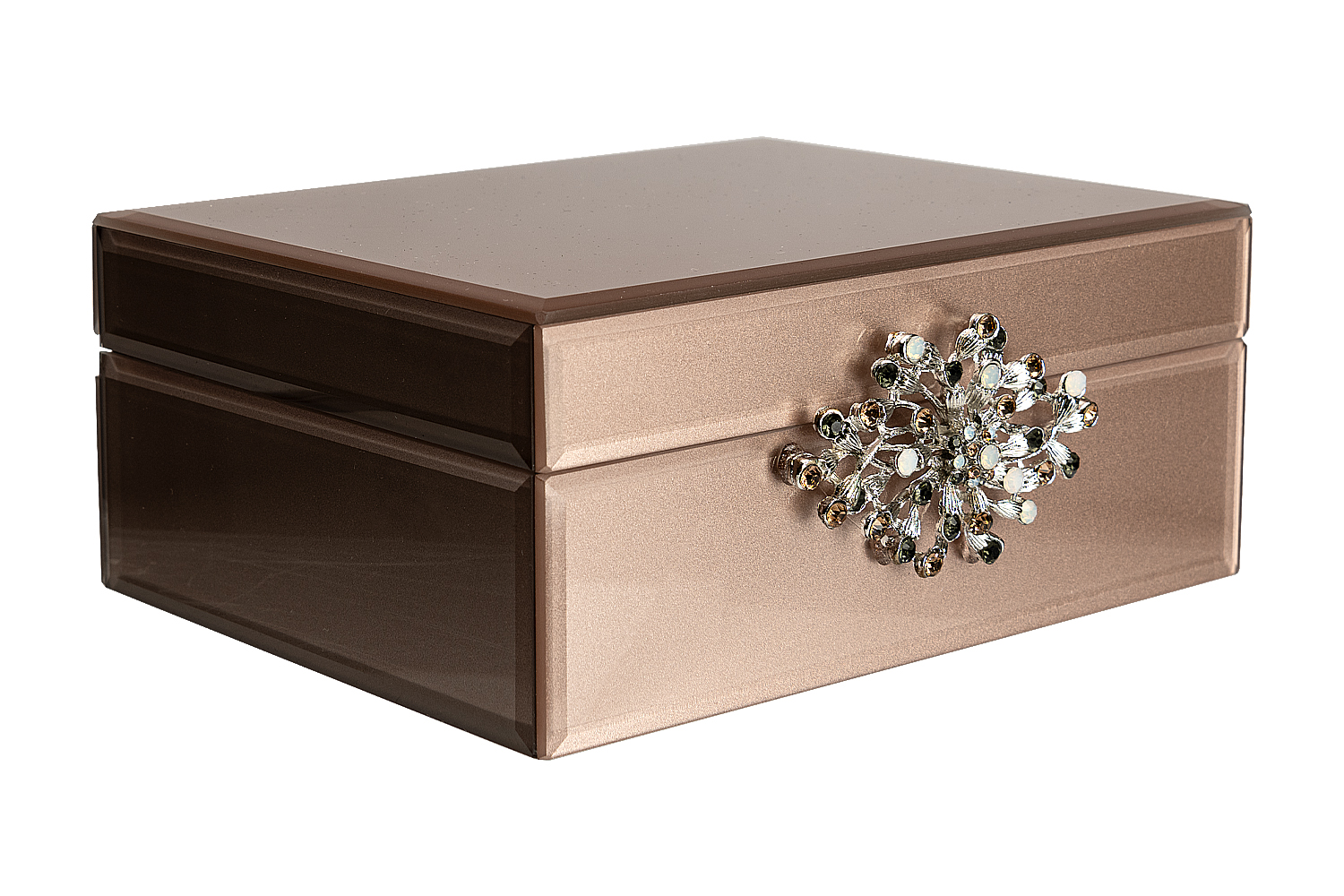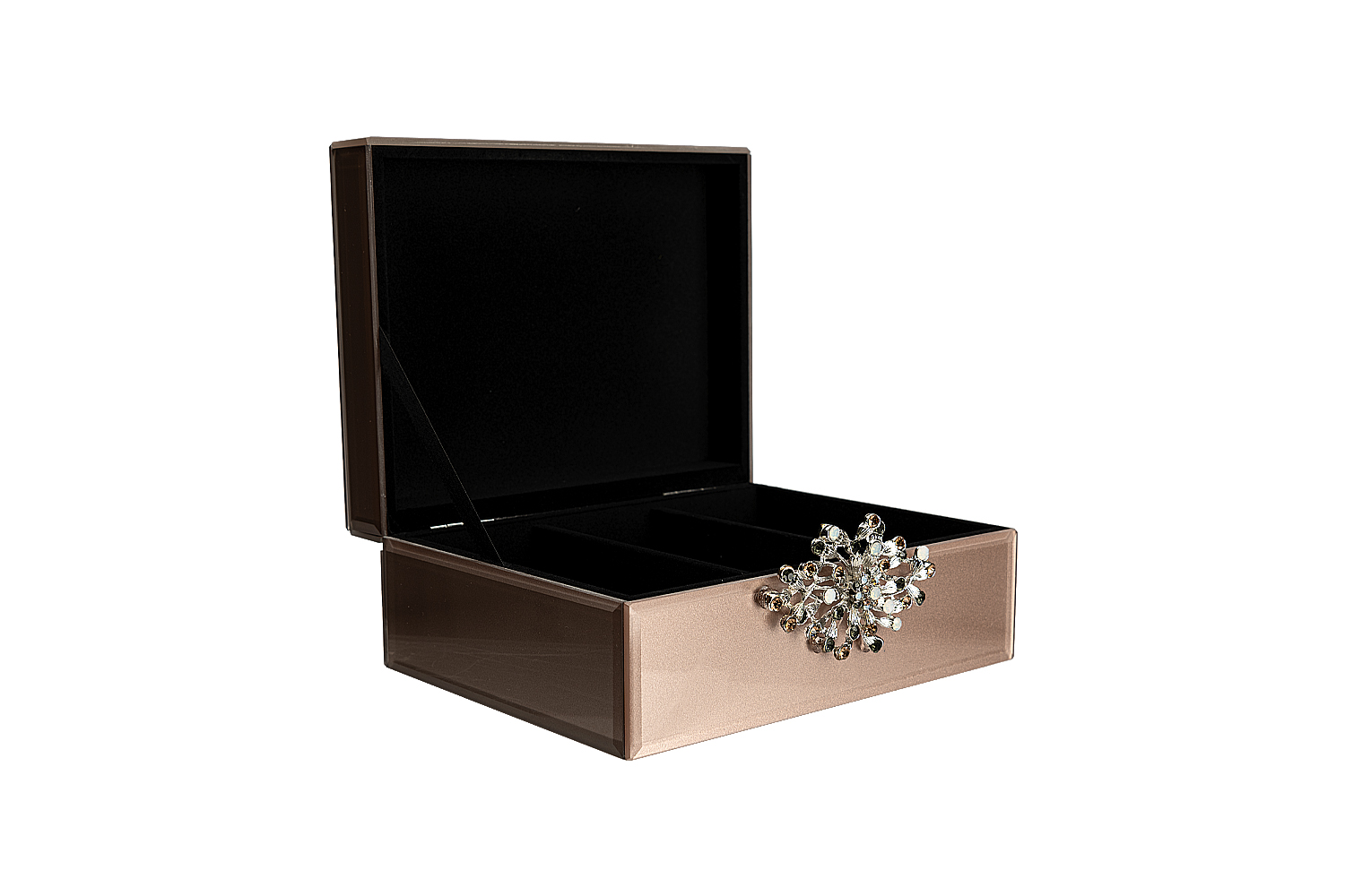 Descopera rafinamentul absolut cu cutia de bijuterii CATIA in nuanta delicata de roz, un cadou ideal pentru cei care apreciaza eleganta si frumusetea detaliilor fine. Aceasta cutie sofisticata, realizata din sticla, MDF si cristale, are dimensiunea perfecta de 19x15x8 cm pentru a pastra in siguranta cele mai pretioase bijuterii. Designul feminin si nuanta subtila de roz aduc un aer romantic in orice spatiu, fiind alegerea perfecta pentru a infrumuseta masa de toaleta sau noptiera. Alege produsele Nobila Casa pentru cadouri speciale si amintiri de neuitat!