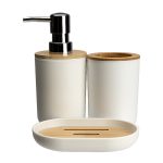 Fabricate din materiale usor de intretinut, accesoriile din colectia Zamora sunt gandite pentru a rezista utilizarii zilnice, oferindu-ti atat functionalitate, cat si stil. Culorile neutre si combinatia cu elemente naturale fac aceste accesorii versatile, adaugand un plus de rafinament spatiului. Pe langa utilitatea lor in baie, aceste produse pot fi folosite si in bucatarie pentru o organizare impecabila, integrandu-se cu usurinta si oferind un aspect ordonat si elegant. Alege dozatorul de sapun pe culoarea alba!