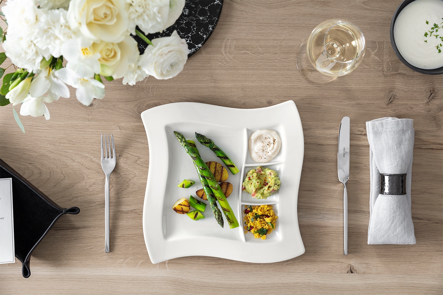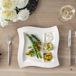 Imbogateste-ti mesele cu farfuria grill NEW WAVE de la Villeroy&Boch, disponibila la Nobila Casa. Parte din colectia NEW WAVE, aceasta farfurie din portelan premium alb, cu dimensiuni de 27×27 cm, se remarca prin designul sau unic, elegant si sofisticat. Farfuria grill NEW WAVE aduce un plus de stil si originalitate fiecarei mese, cu formele sale unduite si liniile curbe distincte. Este perfecta pentru servirea preparatelor la gratar, a fripturilor si a legumelor grill, transformand fiecare masa intr-o experienta vizuala deosebita. Ideala pentru a adauga un strop de eleganta in casa ta sau pentru a fi oferita cadou celor dragi, farfuria grill NEW WAVE este o alegere excelenta pentru familie si prieteni. Fiecare detaliu al acestei farfurii reflecta maiestria si excelenta Villeroy&Boch, transformand fiecare masa intr-un moment memorabil. Te invitam sa explorezi si celelalte produse din colectia NEW WAVE disponibile la Nobila Casa. Fiecare piesa este conceputa pentru a adauga un plus de stil si rafinament in casa ta, creand o atmosfera sofisticata si armonioasa.