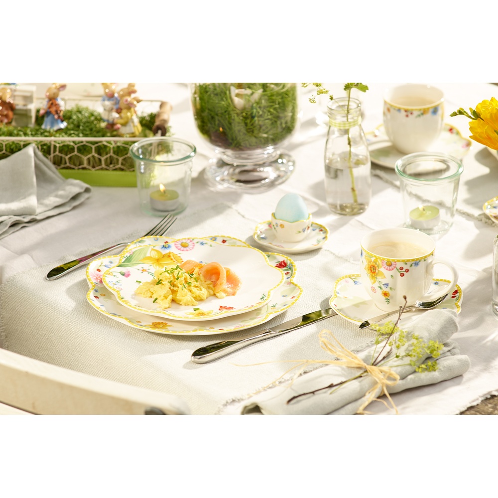 Toata lumea asteapta cu nerabdare Pastele si primavara. Este timpul pentru decoratiuni minunate, colorate si jucause. Colectia Spring Awakening de la Villeroy & Boch este aici pentru a infrumuseta caminul tau si pentru a aduce lumina si zambete la masa de Paste. Adauga un plus de eleganta si prospetime meselor tale cu farfuria pentru salata Spring Awakening! Cu un design fermecator in culorile alb si galben si o dimensiune ideala de 22 cm, aceasta farfurie este fabricata din portelan premium, garantand calitate si rafinament. Poti sa o cureti cu usurinta in masina de spalat vase si sa o folosesti in cuptorul cu microunde pentru a-ti servi preparatele preferate. Profita acum de aceasta oportunitate si comanda farfuria pentru salata Spring Awakening pentru a completa aranjamentul meselor tale intr-un mod sofisticat!