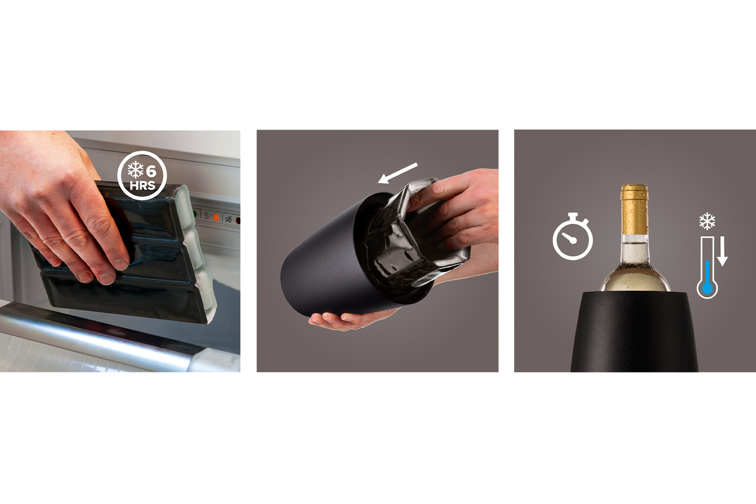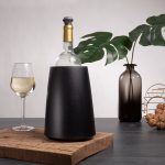 Frapiera pentru vin cu suport VACU VIN, disponibila la Nobila Casa, este accesoriul perfect pentru cei care apreciaza vinurile bine racite. Cu un design modern si elegant in nuante de negru, aceasta frapiera din plastic de inalta calitate nu doar ca adauga un plus de stil mesei tale, dar si functioneaza eficient in mentinerea temperaturii ideale a vinului. Dimensiunile sale compacte de 8,5×22,3×4,9 cm o fac usor de utilizat si de depozitat. Ideal pentru petreceri sau cine intime, frapiera este un cadou inspirat pentru iubitorii de vin. Cu VACU VIN, transformi fiecare degustare intr-o experienta de neuitat!