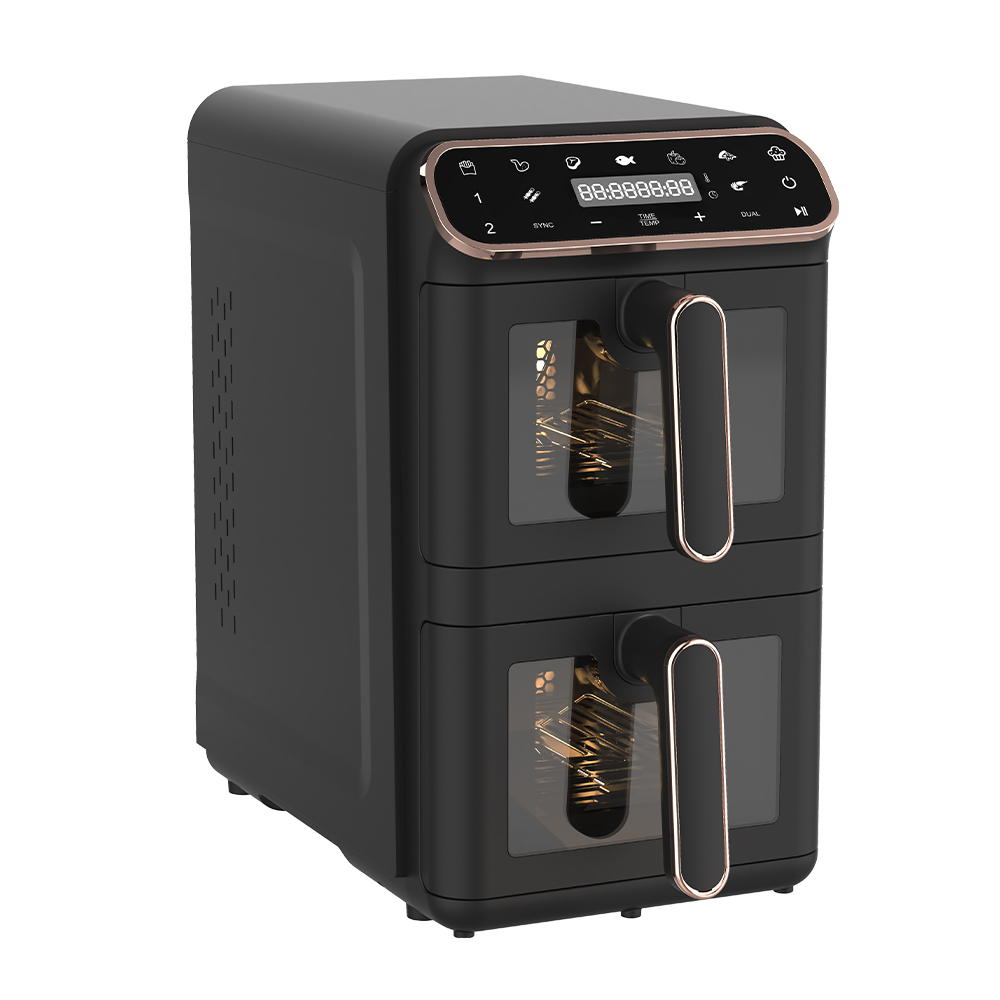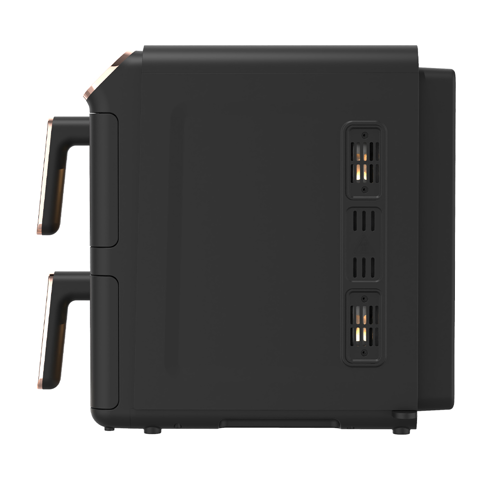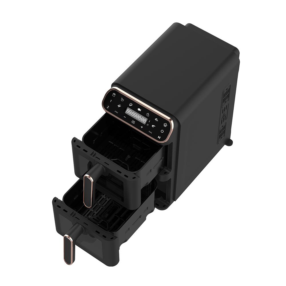 Friteuza dubla cu aer cald de la Berlinger Haus este o alegere excelenta pentru cei care isi doresc o alimentatie mai sanatoasa fara a renunta la gustul crocant si savuros al preparatelor preferate. Dotata cu doua compartimente de gatire, acest aparat permite pregatirea simultana a doua tipuri de alimente, economisind timp si energie in bucatarie. Cu ajutorul tehnologiei de gatire cu aer cald, friteuza asigura o preparare uniforma, fara a fi nevoie de ulei in exces, rezultand mese mai usoare si mai echilibrate pentru intreaga familie.