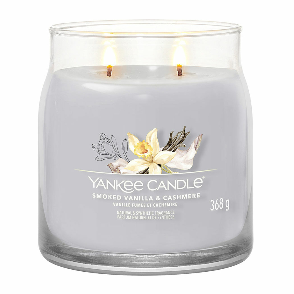 Creeaza o atmosfera calma si primitoare in locuinta ta cu lumanarea parfumata SMOKED VANILLA & CASHMERE 368 g din colectia Smoked Vanilla & Cashmere de la Yankee Candle, disponibila la Nobila Casa. Parfumul elegant de vanilie cu accente fine de cashmere ofera un sentiment de confort si rasfat, fiind perfecta pentru momente de relaxare, lecturi placute sau seri petrecute acasa. Ambalajul rafinat o transforma si intr-un cadou inspirat pentru cei dragi sau pentru tine insuti.