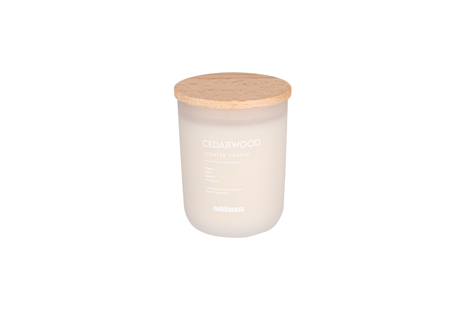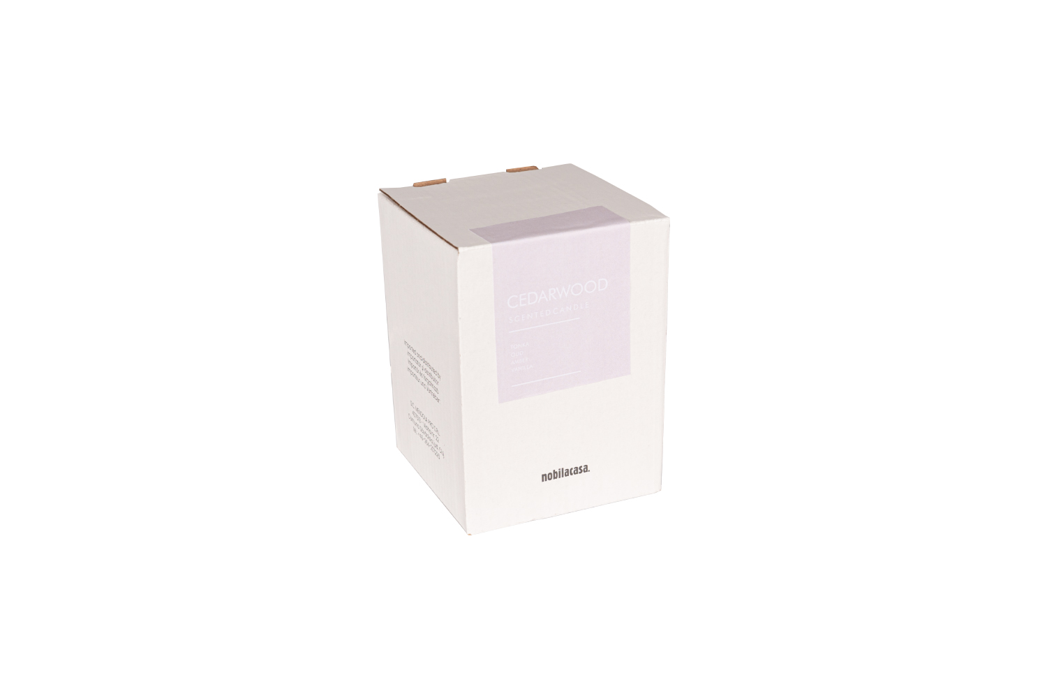 Material: ceara de soia (60%), parafina (34%), parfum (6%) si sticla