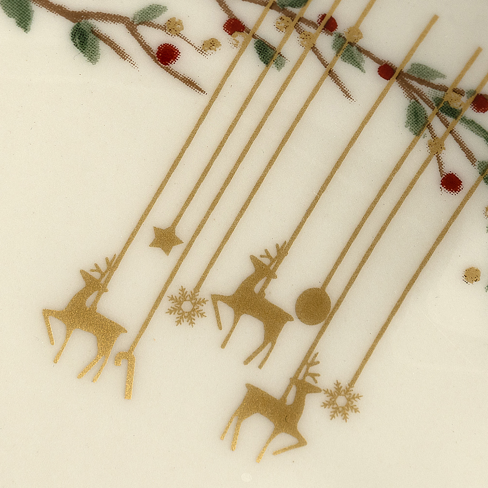 Serveste cu eleganta gustari diverse in timpul sarbatorilor cu platoul compartimentat GOLDEN ILEX, 25 cm, realizat din portelan, disponibil la Nobila Casa. Designul practic, impreuna cu detaliile aurii fine, transforma fiecare prezentare a aperitivelor, nucilor sau prajiturilor intr-o experienta rafinata si festiva. Este ideal pentru mesele in familie, petrecerile de Craciun sau ca cadou elegant pentru cei dragi, aducand armonie si stil decorului tau. Alege si alte piese din colectia Golden Ilex pentru a completa armonios masa de sarbatori.