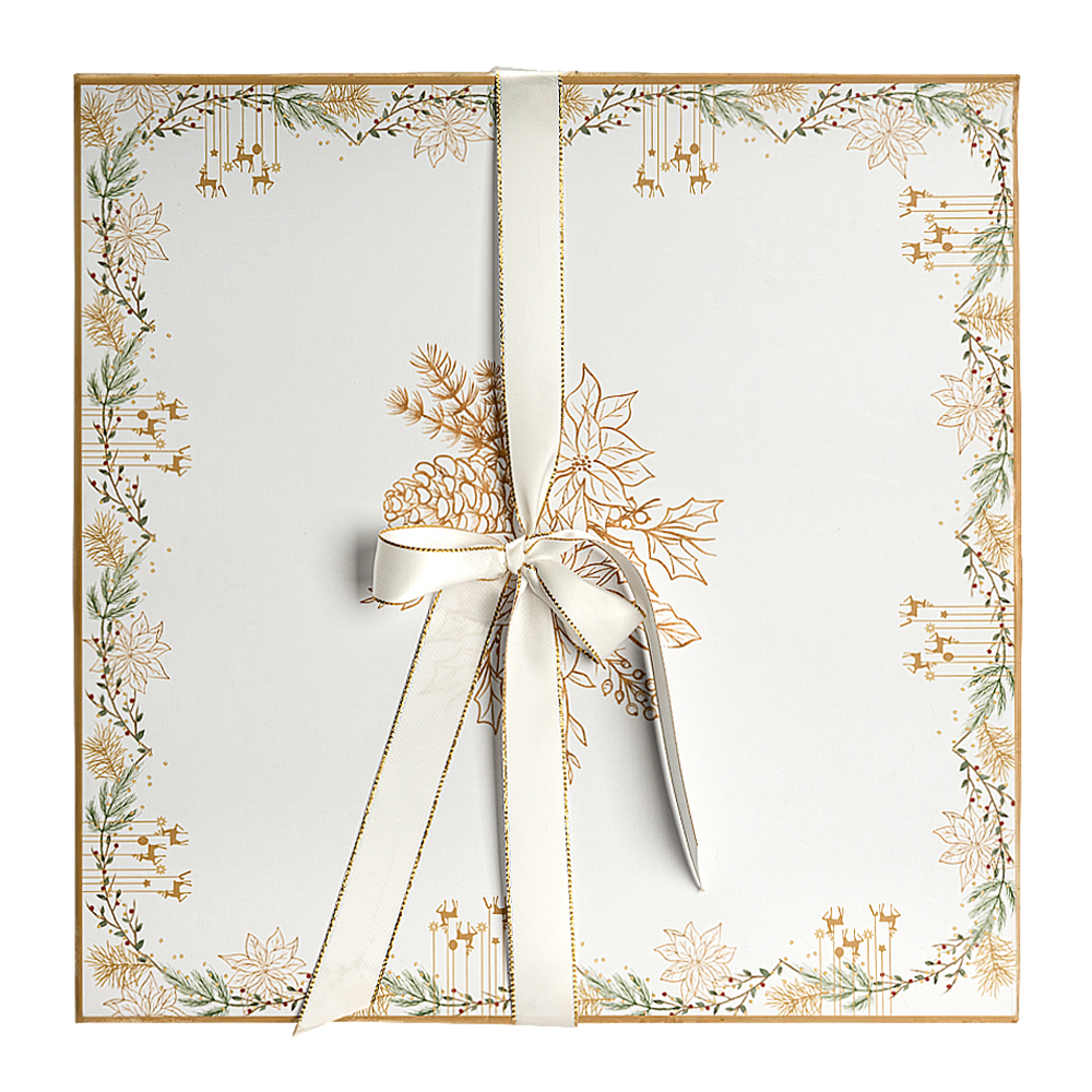 Serveste cu stil gustari variate in timpul sarbatorilor cu platoul compartimentat GOLDEN ILEX, 30 cm, realizat din portelan, disponibil la Nobila Casa. Cu un design practic si decor elegant cu accente aurii, acest platou este ideal pentru a prezenta aperitive, nuci, bomboane sau fructe uscate intr-o maniera rafinata. Este perfect pentru mesele in familie si pentru petrecerile festive, adaugand eleganta si functionalitate decorului tau de Craciun. Alege si alte piese din colectia Golden Ilex pentru a completa perfect masa de sarbatori.