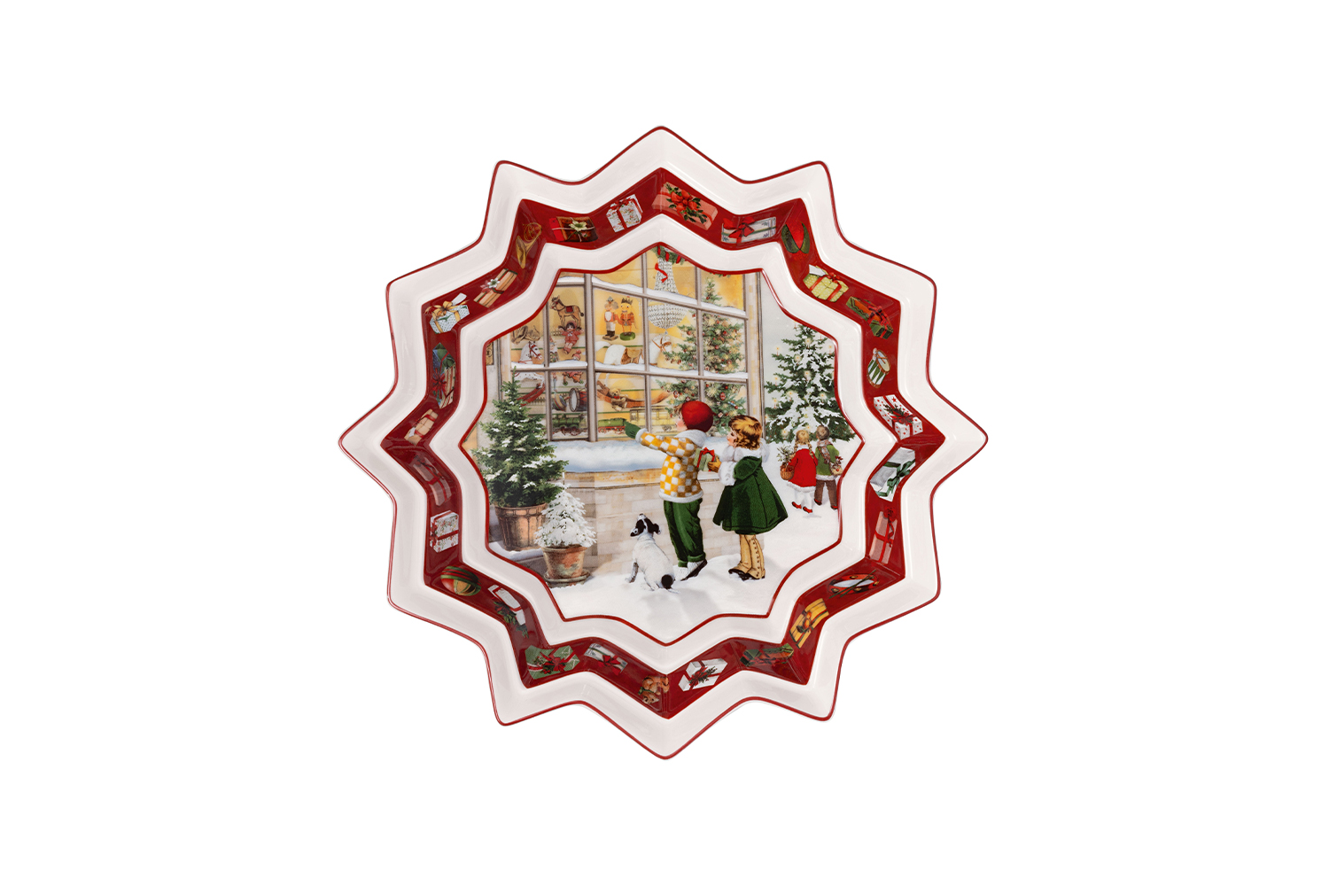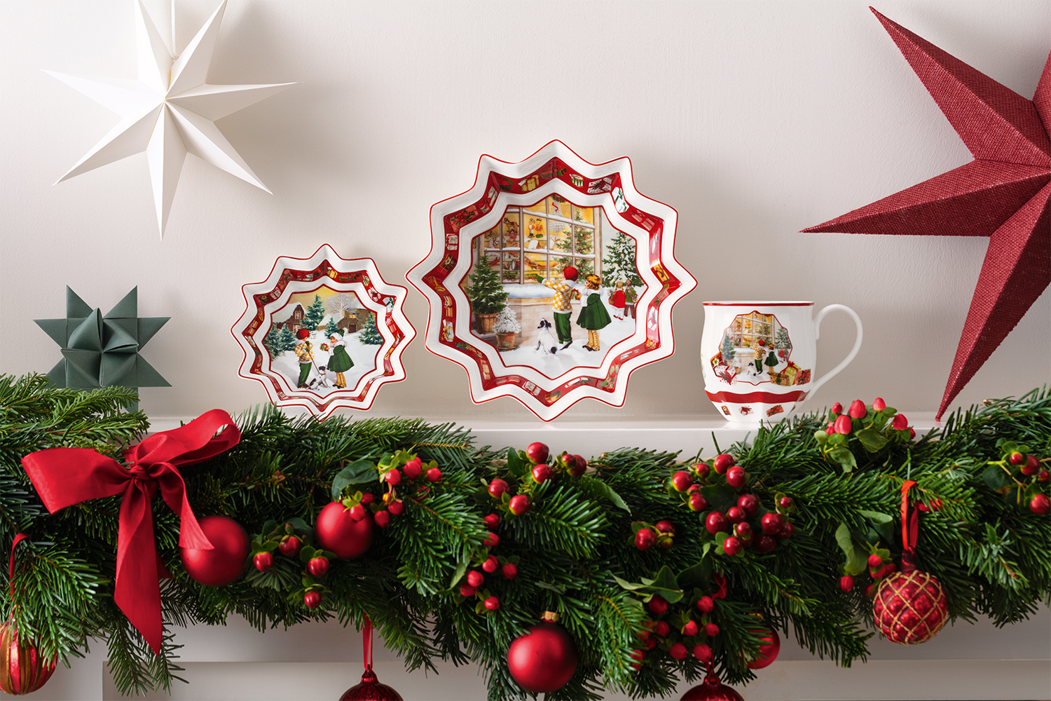 Platoul cu magazin de jucarii TOY'S FANTASY de la Villeroy&Boch, disponibil la Nobila Casa, este o piesa eleganta si plina de farmec, perfecta pentru masa de Craciun. Realizat din portelan de inalta calitate, acest platou rotund de 24 cm este decorat cu un design vesel si detaliat, care ilustreaza un magazin de jucarii plin de cadouri si bucurie. Culorile vii si motivele festive transforma acest platou intr-o piesa de colectie din gama TOY'S FANTASY, perfecta pentru a servi prajituri, gustari sau pentru a adauga o nota festiva mesei tale. Ideal atat pentru uz personal, cat si ca un cadou special, acest platou aduce magia sarbatorilor in casa ta. Descopera si alte produse din colectia TOY'S FANTASY sau din alte colectii de la Villeroy&Boch pentru a crea un decor de sarbatoare unic si fermecator.