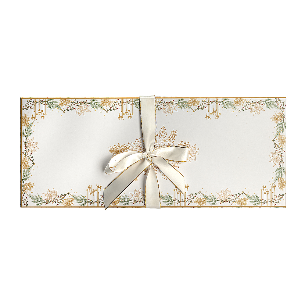 Adauga rafinament meselor tale festive cu platoul dreptunghiular GOLDEN ILEX, realizat din portelan, disponibil la Nobila Casa. Dimensiunea generoasa si decorul elegant cu accente aurii il fac ideal pentru servirea aperitivelor, prajiturilor sau preparatelor traditionale de sarbatori. Designul modern imbinat cu spiritul festiv transforma acest platou intr-o piesa centrala a mesei, aducand armonie si stil decorului de Craciun. Descopera si celelalte articole din colectia Golden Ilex pentru a completa intr-un mod sofisticat vesela de sarbatori.
