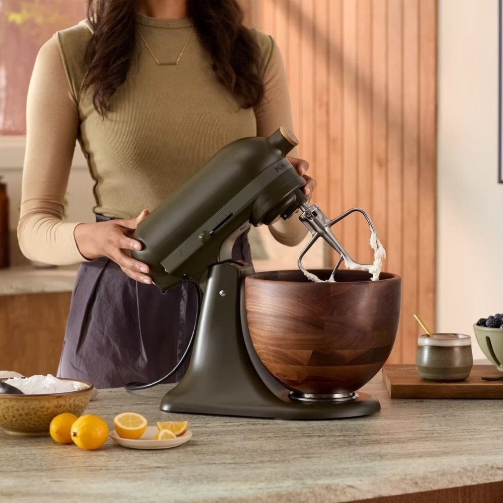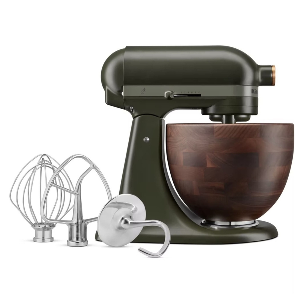 Modelul include un bol din lemn de nuc autentic, adaugand un plus de naturalete si stil. Setul este completat de un tel cu 6 fire din inox, un carlig pentru aluat din inox si o paleta din inox, toate create pentru utilizare intensa si eficienta in bucatarie. Aceste accesorii reflecta atentia la detalii si calitatea premium oferita de KitchenAid. Cu o putere de 300W, robotul este capabil sa amestece, sa bata si sa framante fara efort. Viteza maxima de rotatie este de 220 rotatii/minut, iar cea minima este de 58 rotatii/minut, permitandu-ti sa adaptezi fiecare preparat exact cum doresti. Capacitatea bolului de 4.7 L este ideala pentru cantitati medii si mari, iar lungimea cablului de alimentare de 120 cm iti ofera libertate de miscare. Cu o greutate de 10.5 kg, robotul este stabil si robust.