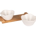 Bolurile pentru aperitive sunt ideale pentru servirea snacksurilor, sosurilor sau aperitivelor. Setul este compus din 3 boluri, usor de manevrat si realizat din portelan de inalta calitate, cu manere din bambus. Un avantaj este ca bolurile se pot folosi si separat, oferindu-ti flexibilitate in servire.Designul sau simplu se incadreaza perfect in diverse stiluri de decor. Serveste aperitivele cu stil si impresioneaza-ti oaspetii cu aceste boluri, preferatele clientilor nostri.Adauga in cosul tau Set 2 boluri pe suport bambus LAILA.