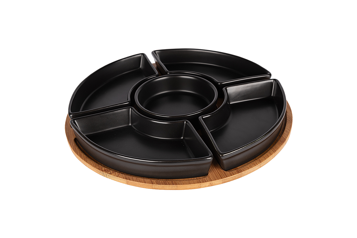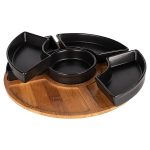 Bolurile pentru aperitive sunt ideale pentru servirea snacksurilor, sosurilor sau aperitivelor. Setul este compus din 3 boluri, usor de manevrat si realizat din portelan de inalta calitate, cu manere din bambus. Un avantaj este ca bolurile se pot folosi si separat, oferindu-ti flexibilitate in servire.Designul sau simplu se incadreaza perfect in diverse stiluri de decor. Serveste aperitivele cu stil si impresioneaza-ti oaspetii cu aceste boluri, preferatele clientilor nostri.Adauga in cosul tau Set 5 boluri pe support bambus INSPIRATION negru.