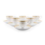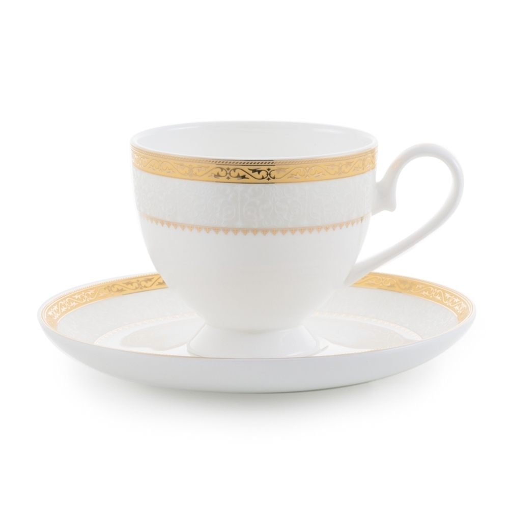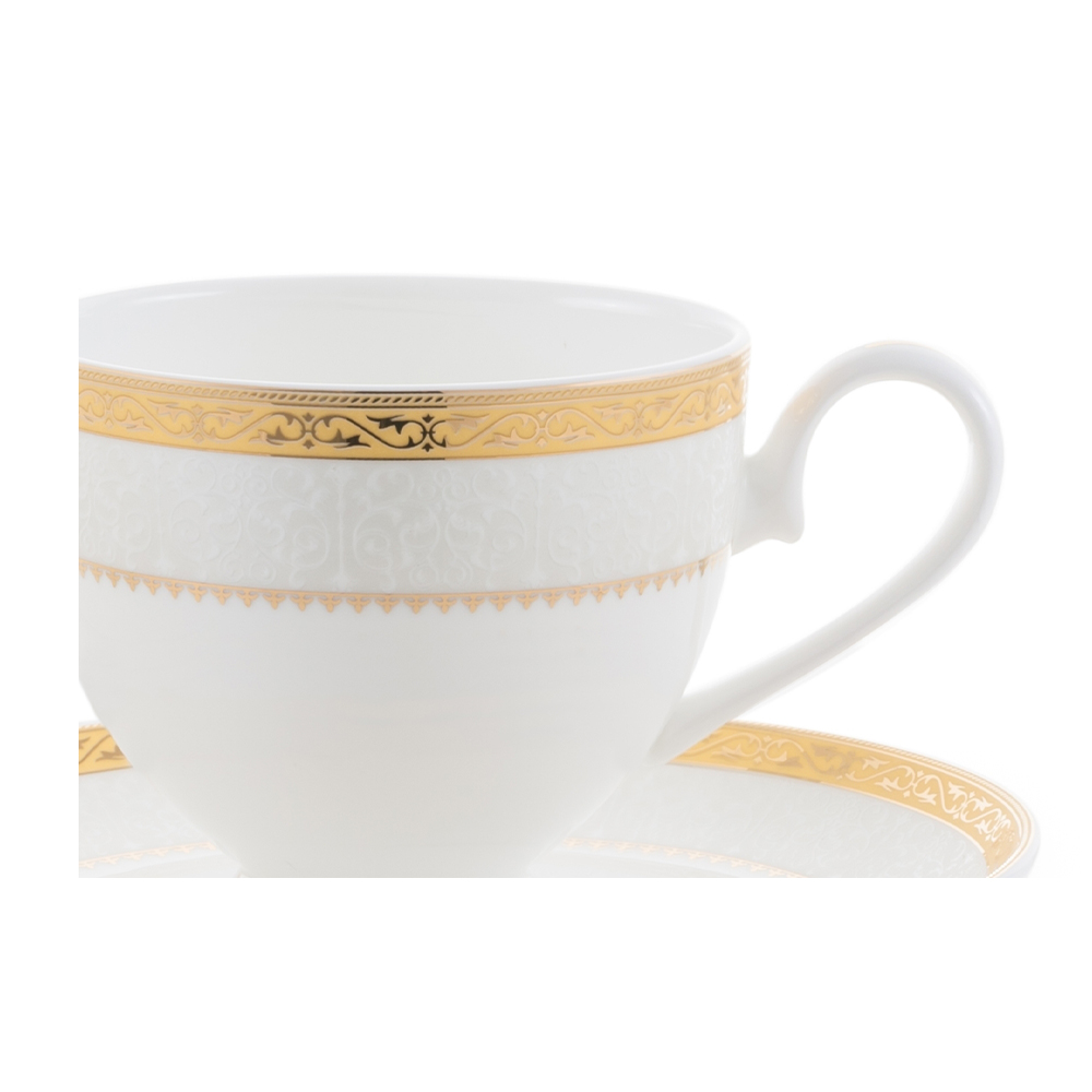 Pentru o servire perfecta a ceaiului sau a cafelei, alege setul de 6 cesti cu 6 farfurii, realizat din portelan englezesc si decorat cu aur sau platina. Acest set elegant si sofisticat adauga un plus de rafinament oricarei ocazii, fiind ideal pentru a impresiona oaspetii sau pentru momentele tale de relaxare. Realizat din portelan englezesc de inalta calitate, setul garanteaza durabilitate si un aspect impecabil. Fiecare ceasca si farfurie este decorata cu detalii din aur sau platina, adaugand un plus de lux si eleganta.