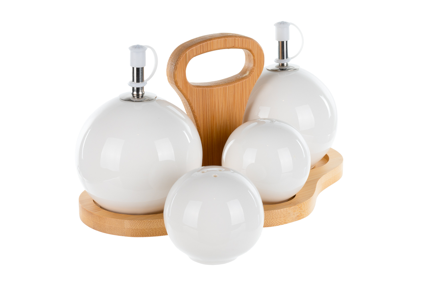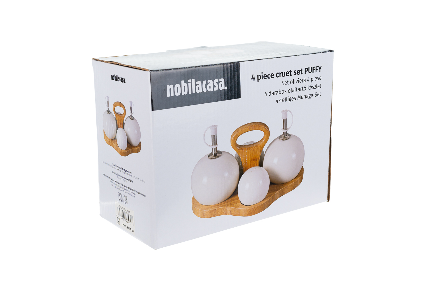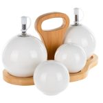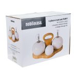 Descopera setul de oliviere 4 piese Puffy de la Nobila Casa, o combinatie rafinata de portelan alb cu un suport elegant din bambus. Forma lor rotunjoara si „pufoasa” adauga un element de gratie si simplitate fiecarei mese. Aceste piese sunt ideale pentru a servi ulei de masline, otet, sare si piper intr-un mod estetic si functional. Suportul din bambus completeaza perfect designul lor, oferind o nota de caldura si naturalitate. Perfecte pentru a completa decorul bucatariei tale sau pentru a fi oferite ca un cadou deosebit, olivierele Puffy de la Nobila Casa iti vor transforma masa intr-o experienta placuta si eleganta. Descopera si alte produse din gama Nobila Casa pentru a imbogati stilul si functionalitatea bucatariei tale cu o atingere subtila de rafinament si eleganta.