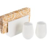 Adaugati o nota de eleganta si rafinament mesei dumneavoastra cu setul de solnita si pipernita Wave de la Nobila Casa, realizat din bambus si portelan alb. Acest set combina functionalitatea si estetica intr-un mod perfect, aducand un plus de stil oricarei mese. Caracteristicile cheie includ materialele premium, durabile si estetic placute: bambusul pentru suport si portelanul alb pentru solnita si pipernita. Designul modern cu linii curate si un stil elegant se potriveste perfect cu orice decor, oferind un set complet pentru condimentarea mancarurilor. Avantajele acestui set includ transformarea mesei intr-un loc de rasfat si eleganta, usurinta in intretinerea materialelor de calitate superioara si versatilitatea sa, potrivita pentru uzul zilnic sau ca cadou perfect pentru cei dragi. Setul de solnita si pipernita Wave de la Nobila Casa este alegerea ideala pentru a completa orice bucatarie moderna si rafinata. Descoperiti si alte produse din colectia Wave pentru a aduce un plus de eleganta in fiecare moment de masa.