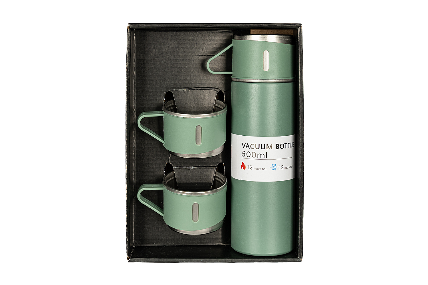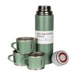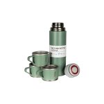 Imbogatiti-va experientele zilnice cu Setul LINDA verde ca natura, care include un termos de 500 ml si trei pahare cu maner, disponibil la Nobila Casa. Fabricat din otel inoxidabil de inalta calitate, termosul LINDA mentine bauturile calde sau reci pana la 12 ore, facandu-l ideal pentru iesiri in natura, drumetii, sau picnicuri cu familia. Setul include si trei pahare cu maner, perfecte pentru a savura bauturile preferate in compania celor dragi, inclusiv alaturi de copii. Designul elegant in nuante de verde aduce un strop de naturalete si rafinament fiecarei aventuri sau pauze. Oferiti-va sau celor dragi un cadou practic si stilat care combina functionalitatea cu estetica inspirata de natura. Completati-va colectia cu alte produse de la Nobila Casa pentru a adauga un strop de sofisticare si naturalete in viata de zi cu zi.