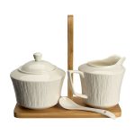 Adauga un plus de eleganta si functionalitate ritualului tau de servire a ceaiului sau cafelei cu setul zaharnita si latiera din colectia STONE, disponibil la Nobila Casa.Realizat din portelan alb de calitate si completat cu detalii din bambus natural, acest set imbina armonios simplitatea designului cu rafinamentul materialelor.Zaharnita si latiera se completeaza perfect, fiind ideale pentru mic dejunuri relaxante in familie, momente tihnite alaturi de cei dragi sau intalniri elegante cu prietenii.Liniile curate si tonurile neutre aduc un aer modern si cald oricarei mese, transformand gesturile simple in clipe cu stil.Un cadou inspirat pentru pasionatii de servire impecabila si un accesoriu esential in completarea colectiei tale.Descopera gama completa STONE de la Nobila Casa si creeaza-ti propriul colt de relaxare, echilibrat si estetic.