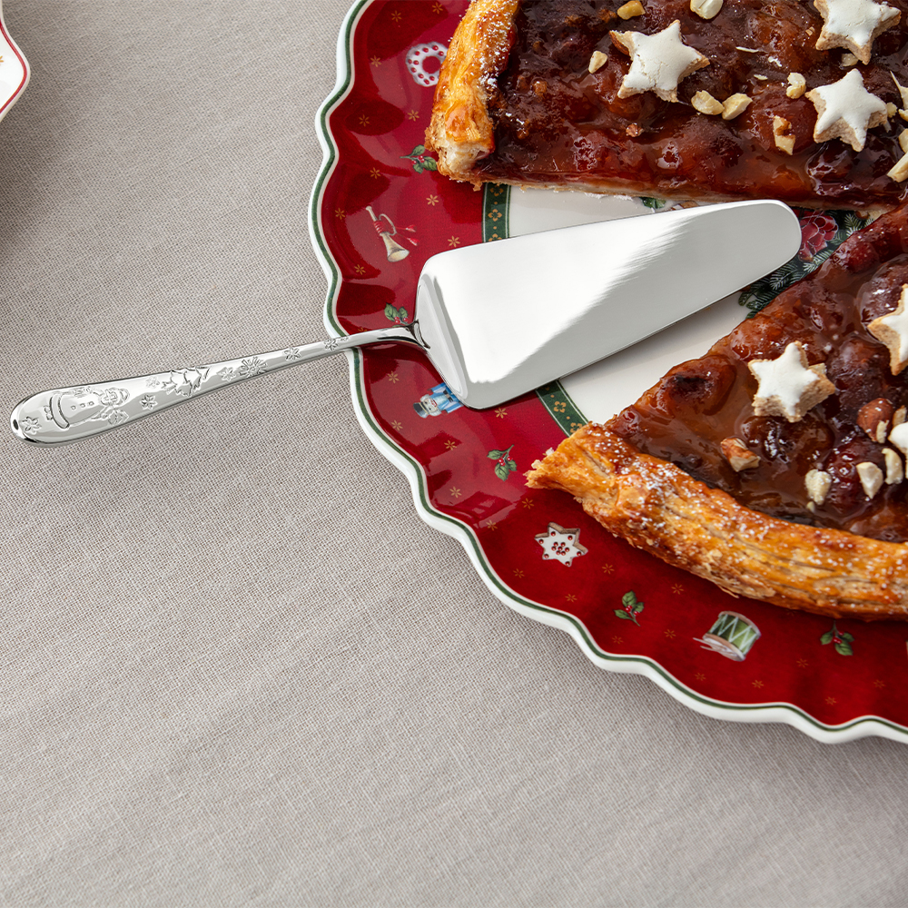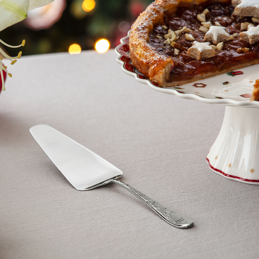 Serveste deserturile preferate cu stil si eleganta in timpul sarbatorilor cu spatula triunghiulara pentru tort TOY'S DELIGHT de la Villeroy&Boch, realizata din otel inoxidabil de inalta calitate, disponibila la Nobila Casa. Designul practic si finisajele impecabile transforma fiecare moment in care tai tortul intr-o experienta rafinata si festiva. Este accesoriul ideal pentru mesele de Craciun alaturi de familie, adaugand un plus de eleganta si functionalitate colectiei Toy's Delight. Aceasta spatula nu este doar un instrument de servire, ci si un detaliu care completeaza cu rafinament masa festiva.