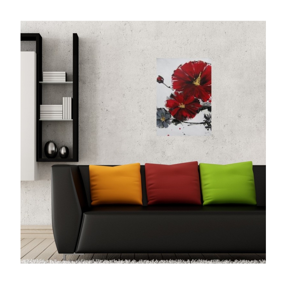 Tabloul pictat manual cherry blossom_a, 70x50 cm, aduce personalitate si rafinament oricarui spatiu. Datorita combinatiilor de culori (gri, rosu), acest tablou se integreaza cu usurinta in decoruri variate. Cu o dimensiune de 50x70 cm, poate deveni cu usurinta punctul de atractie al camerei. Alege-l pentru a schimba aspectul casei fara efort – este o solutie rapida si eficienta pentru un nou look. Inlocuind tabloul, poti transforma atmosfera unei incaperi fara sa modifici nimic altceva. Este de asemenea o alegere inspirata pentru un cadou de casa nou, aducand caldura si stil noii locuinte.