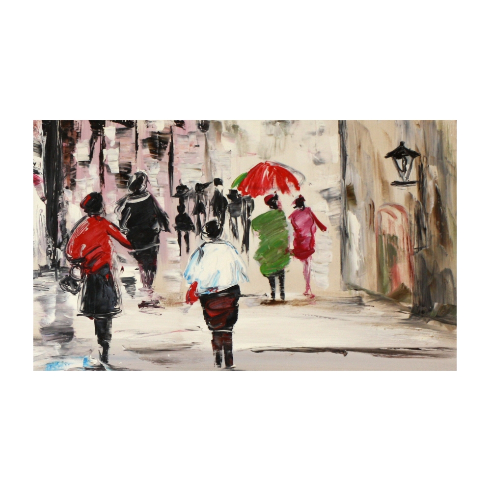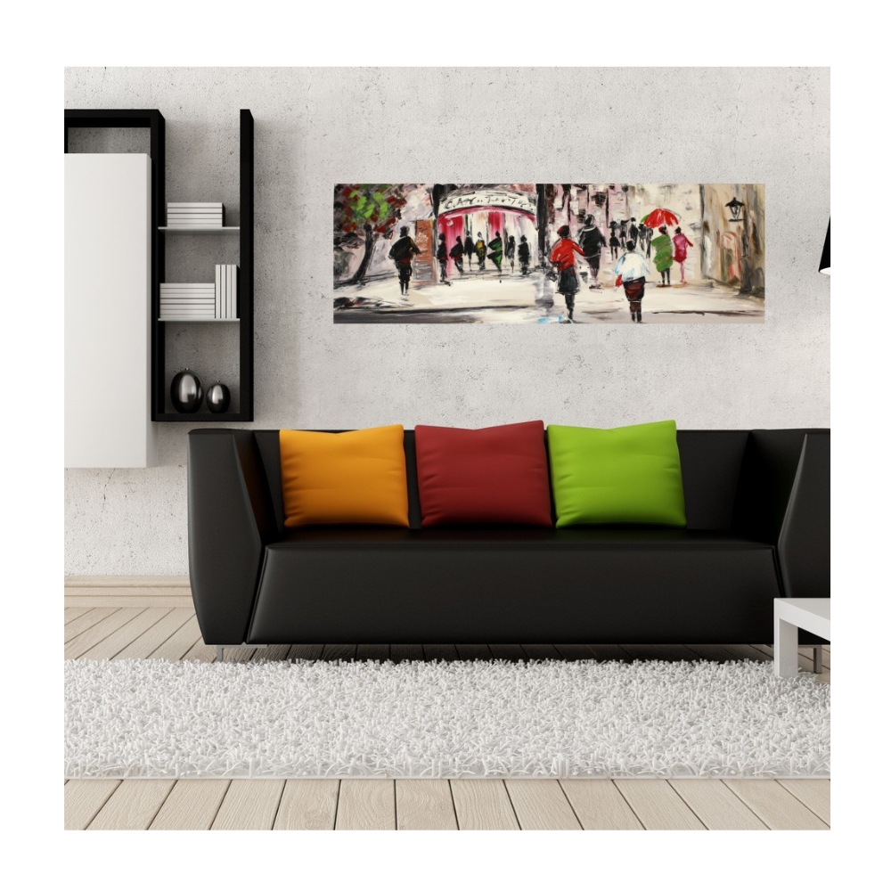 Tabloul pictat manual street life a, 50x150 cm, aduce personalitate si rafinament oricarui spatiu. datorita combinatiilor de culori (gri, rosu), acest tablou se integreaza cu usurinta in decoruri variate. cu o dimensiune de 150x50 cm, poate deveni cu usurinta punctul de atractie al camerei. Alege-l pentru a schimba aspectul casei fara efort – este o solutie rapida si eficienta pentru un nou look. inlocuind tabloul, poti transforma atmosfera unei incaperi fara sa modifici nimic altceva. Este de asemenea o alegere inspirata pentru un cadou de casa nou, aducand caldura si stil noii locuinte.